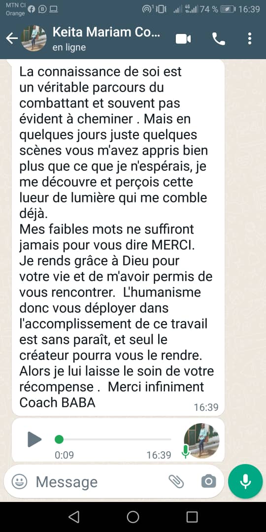 Ma rencontre avec coach Baba m'a beaucoup aidé.